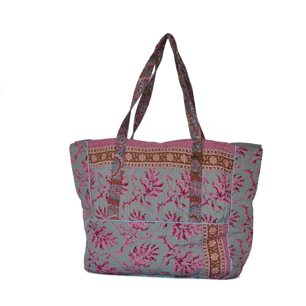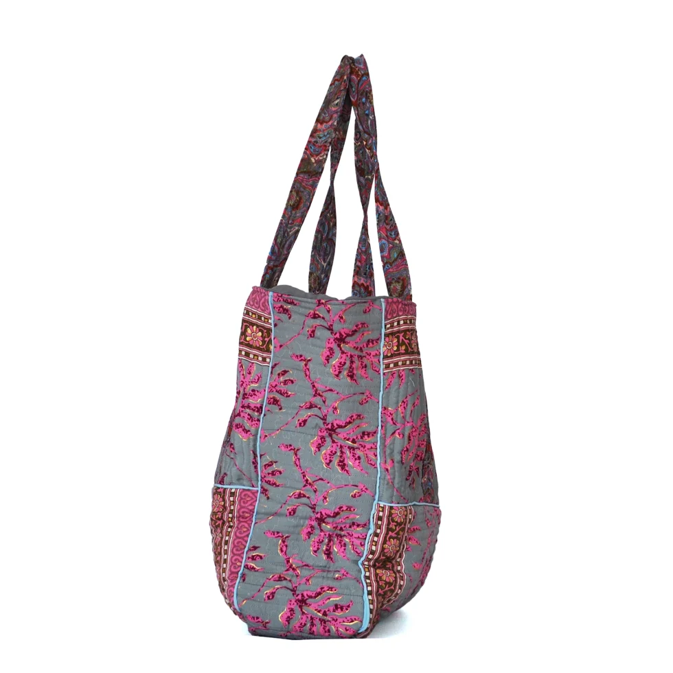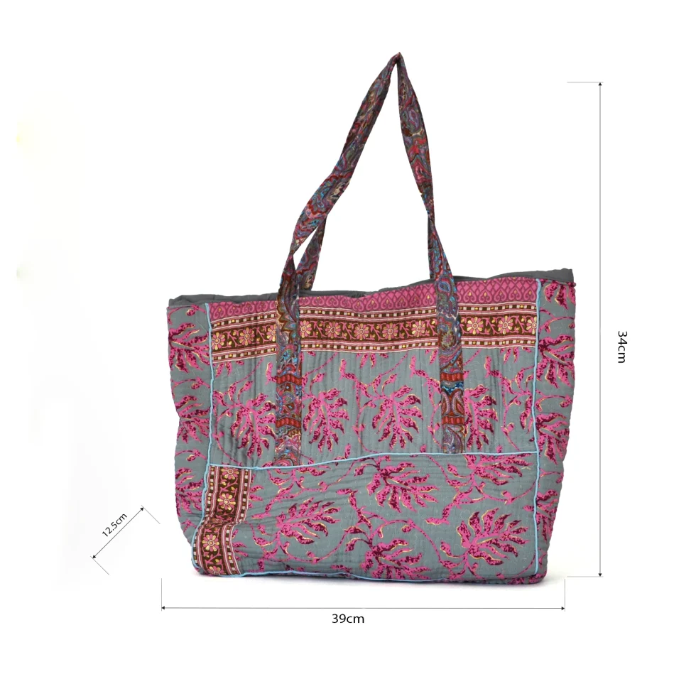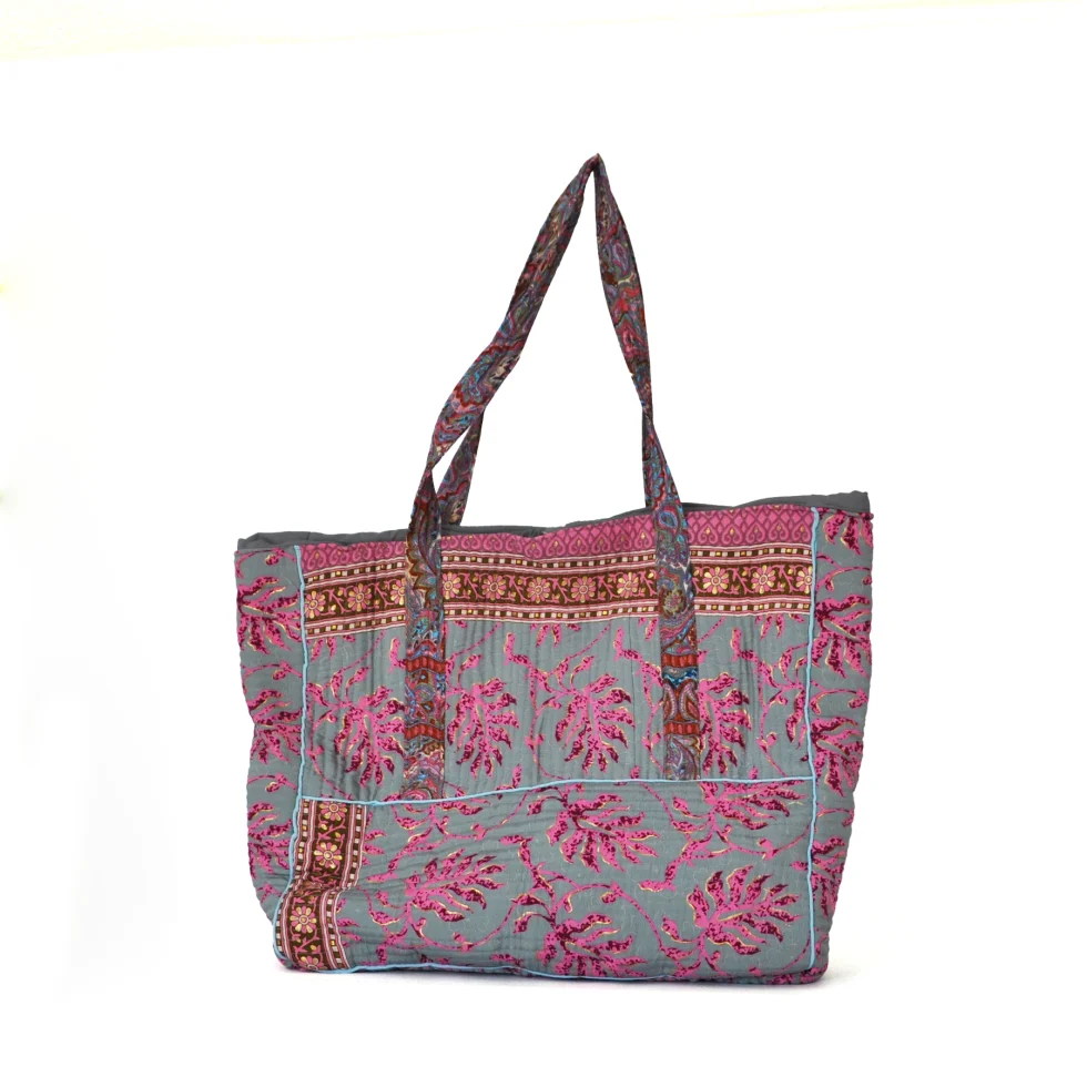 Borsa tote in cotone artigianale con stampe indiane, versatile e perfetta per ogni occasione.