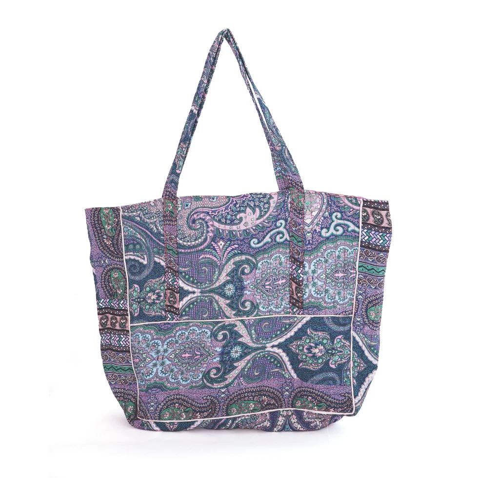 Totebag artigianale in cotone con motivi indiani, ideale per la spesa, il lavoro e il tempo libero.