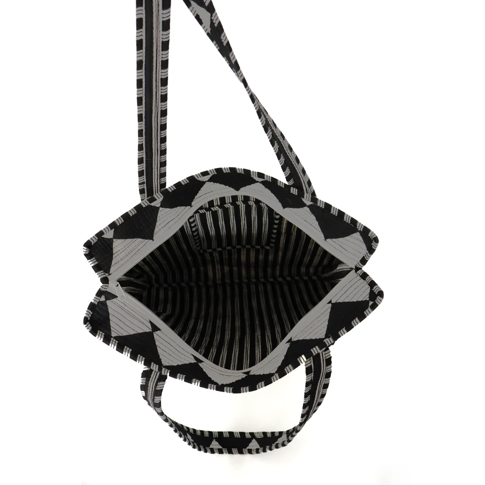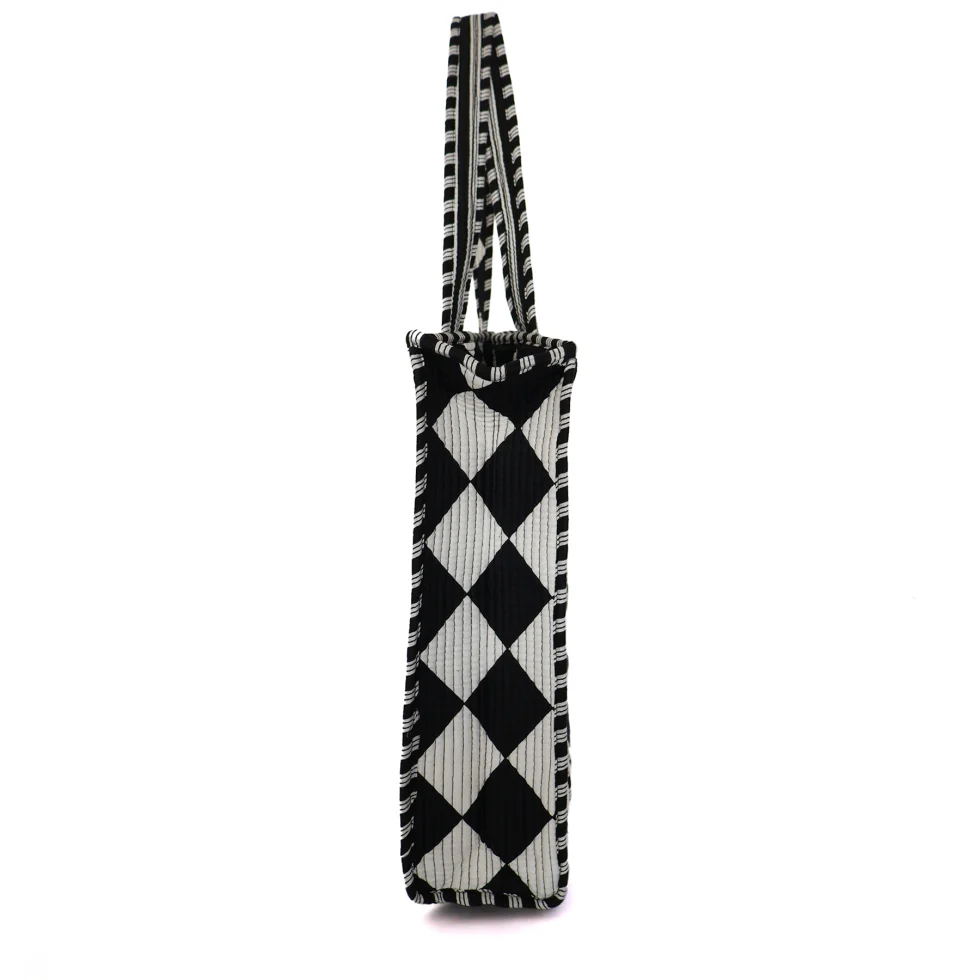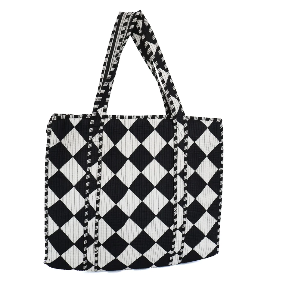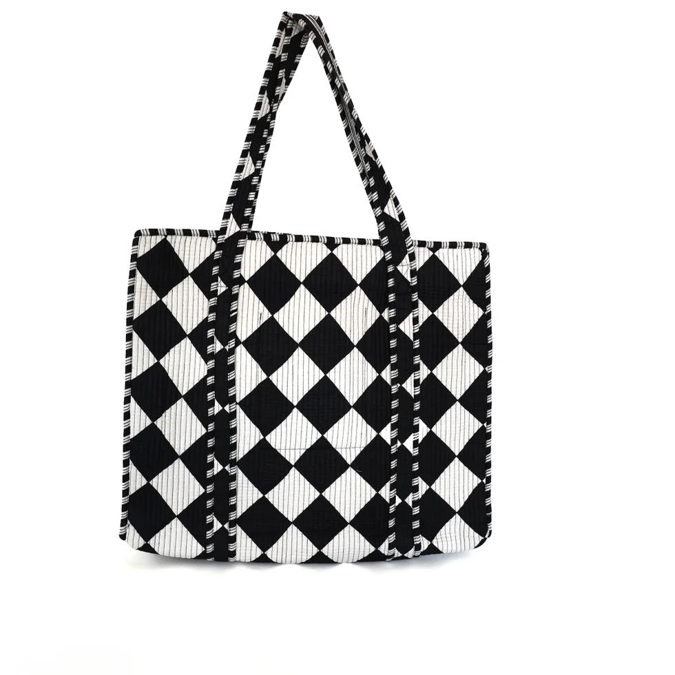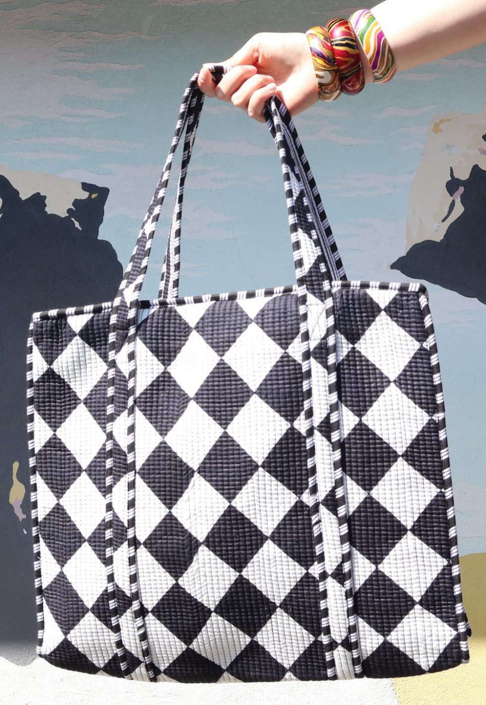 Borsa in cotone indiano trapuntato, ampia e colorata, con tasca interna e chiusura zip.