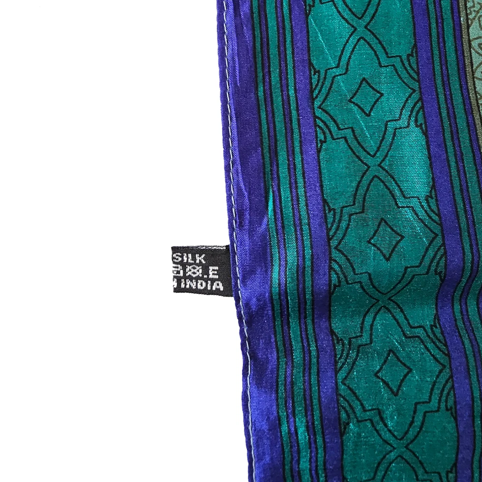 I foulard sari sono realizzati con vecchi sari indiani, tessuti tradizionali che vengono riutilizzati per creare nuovi prodotti. Questo rende i foulard sari un accessorio sostenibile e rispettoso dell’ambiente.