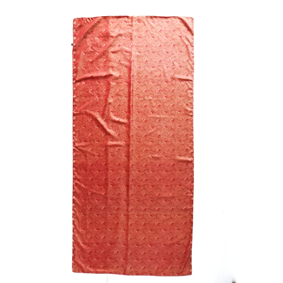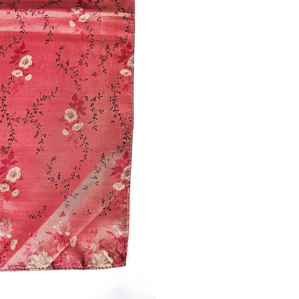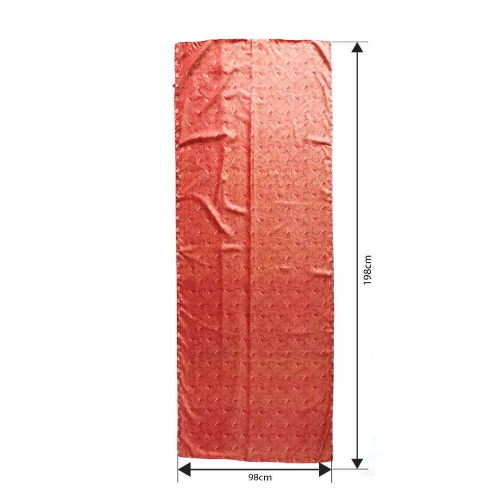 Sciarpa in seta elegante con motivi floreali ispirati alla tradizione indiana. Accessorio artigianale doubleface, sostenibile e versatile.