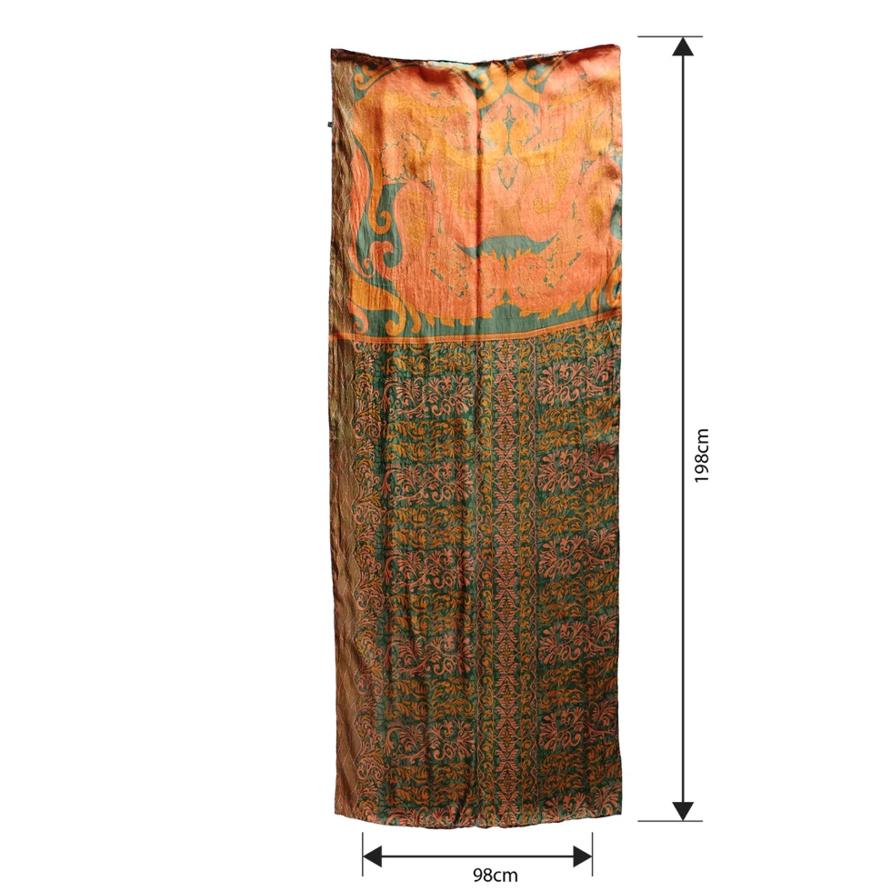 I foulard sari sono realizzati con vecchi sari indiani, tessuti tradizionali che vengono riutilizzati per creare nuovi prodotti. Questo rende i foulard sari un accessorio sostenibile e rispettoso dell’ambiente.