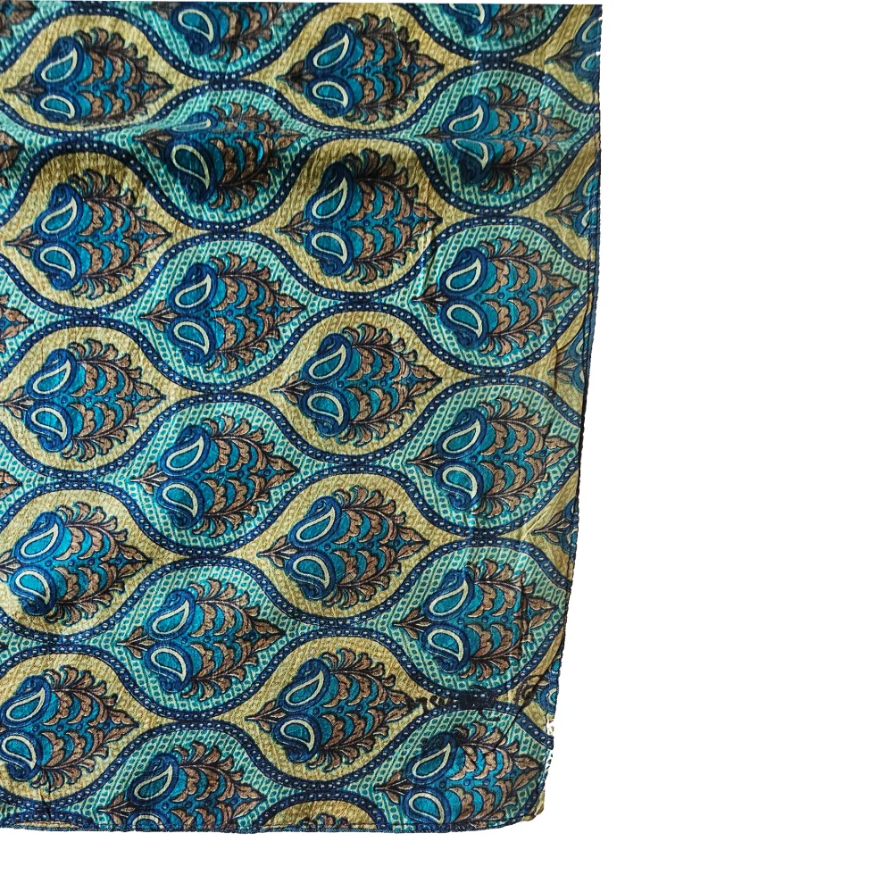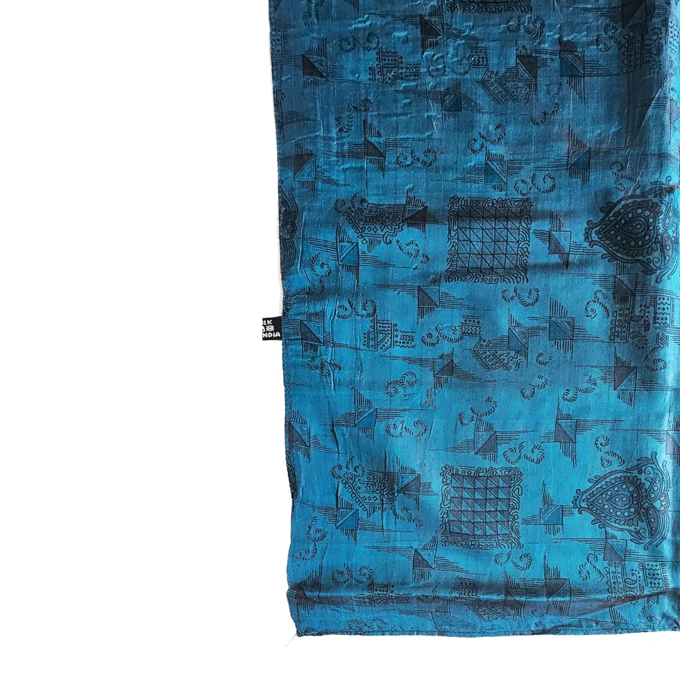 Sciarpa in seta pavone, elegante foulard sari artigianale con motivi orientali.