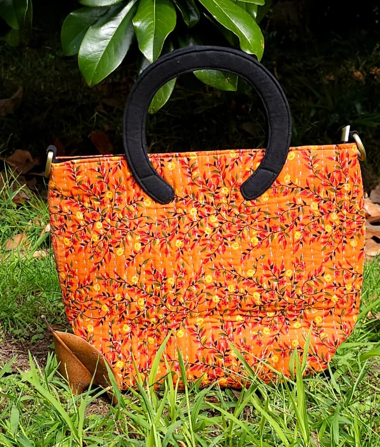 Borsa a mano artigianale in cotone con tracolla, ispirata ai motivi indiani. Realizzata con impuntura tradizionale di Jaipur.