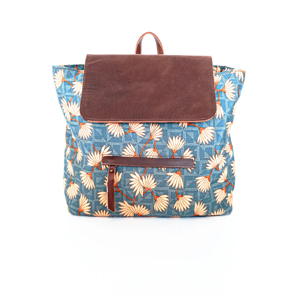 Zaino in tessuto stampato con inserti in pelle made in India: stile e avventura