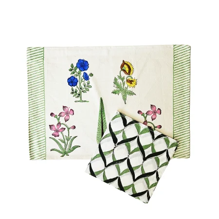 Padma Set Tovagliette e Tovaglioli in Cotone – Colore Fiori di Campo – 50x35cm + 44x44cm