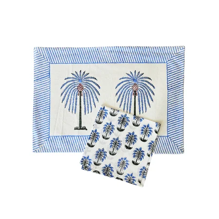 Padma Set Tovagliette e Tovaglioli in Cotone – Palma Blu (50x35cm tovaglietta, 44x44cm tovagliolo)